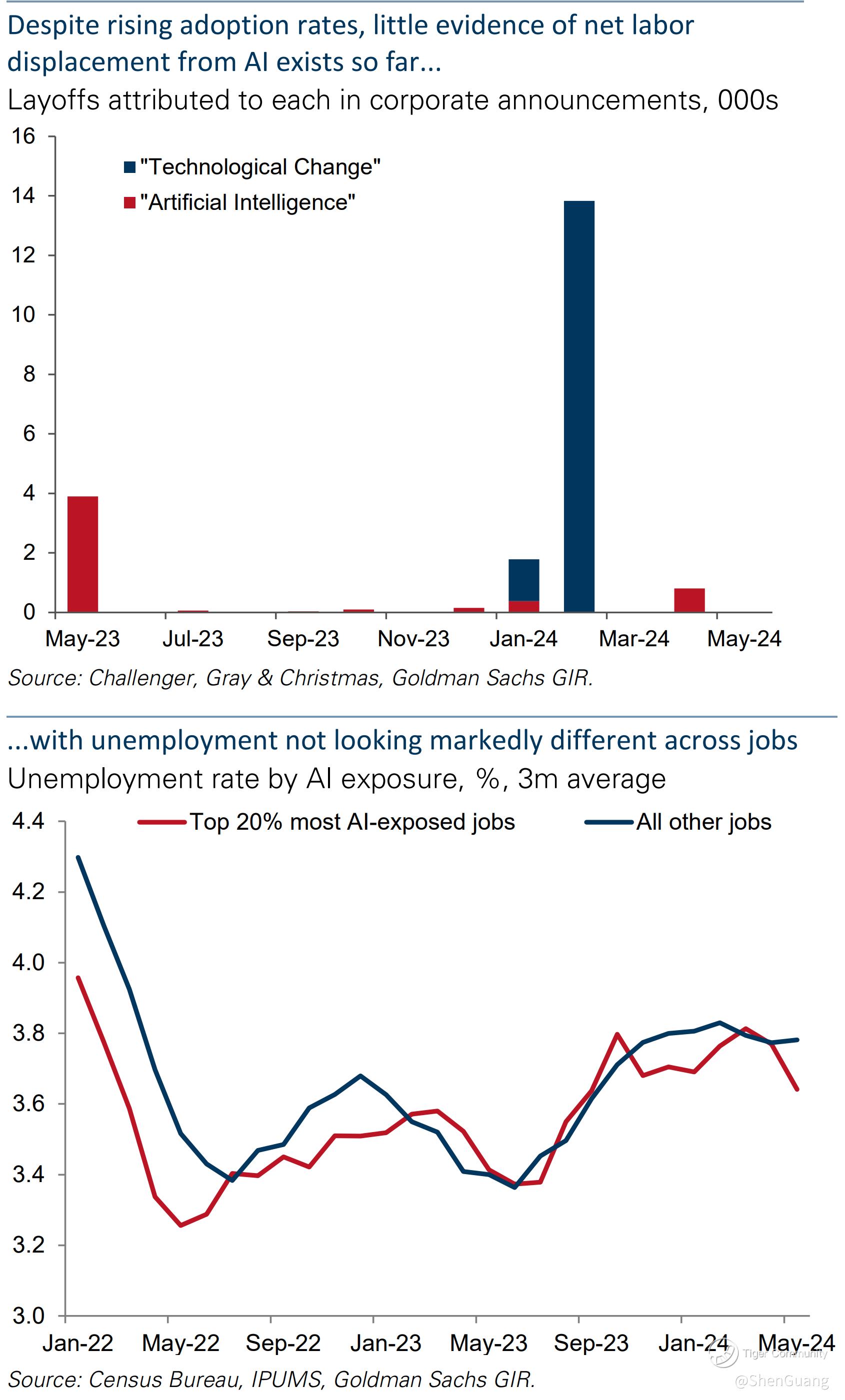 but agrees that the AI hasn't displaced a substantial volume of human labour:
