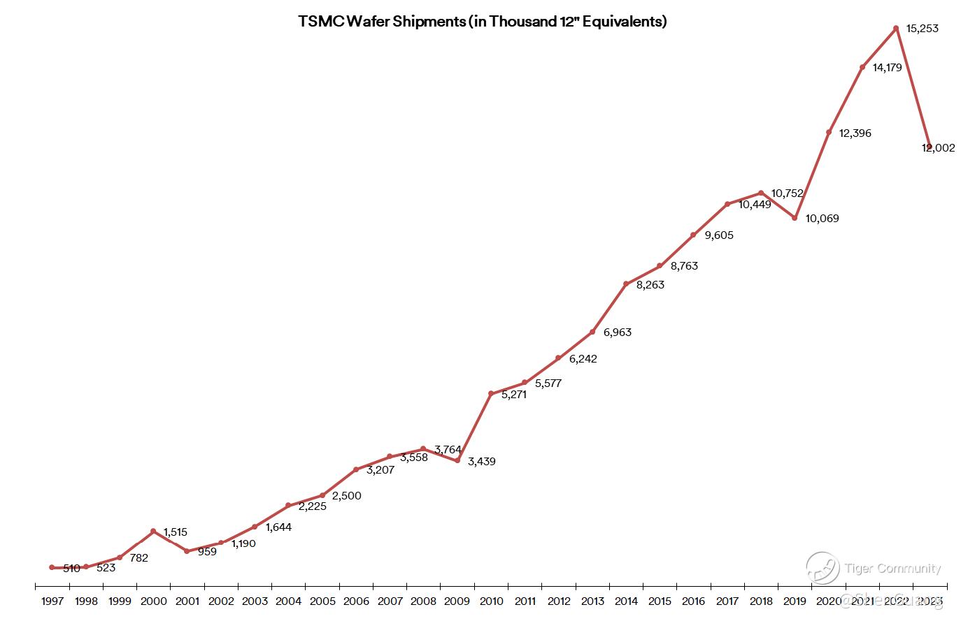 What propped up 2023 revenues, given decreasing overall shipments, is the evolution in product mix. The company's newly-inducted 3nm ("3 nanometer") wafers was ready for shipments in bulk from 2023 onwards.