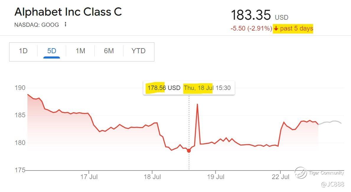 Based on past 5 days’ performances, Google is still off by -2.91% (see above).