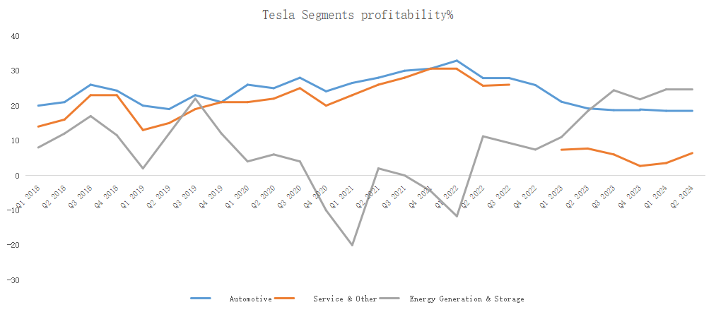 By segment, Automotive gross margin was 18.5%, flat compared to Q1; Energy gross margin was 24.55%, also flat quarter-over-quarter; Services and Other business gross margin was 6.4%, showing significant improvement: