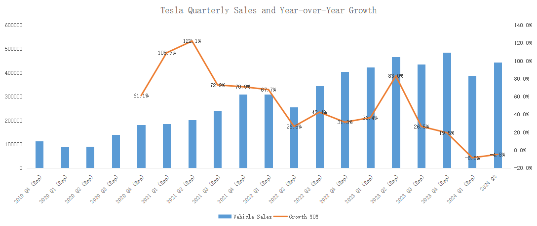 The poor vehicle sales were within market expectations, with Q2 deliveries totaling 440,000 vehicles, down 4.8% year-over-year: