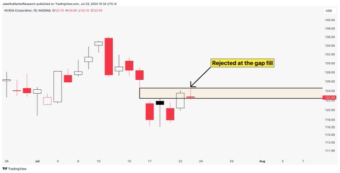 $NVIDIA Corp(NVDA)$ A great case study on gaps acting as short term reversal areas (in this case, resistance).