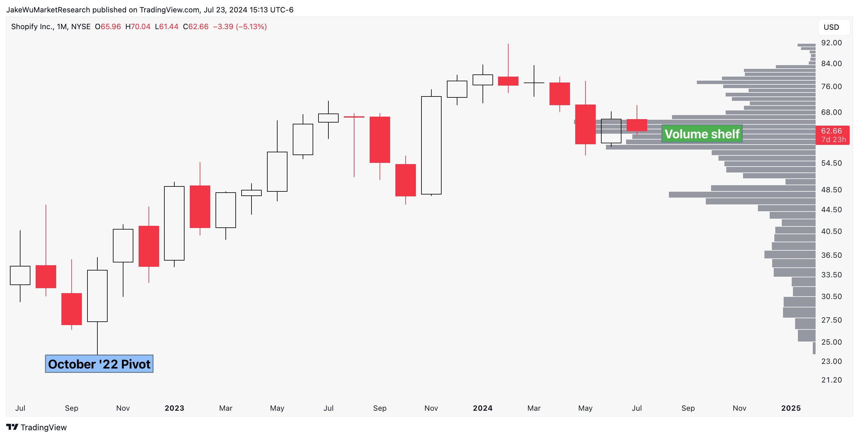 $Shopify(SHOP)$ Volume shelf setup on the monthly candle chart.