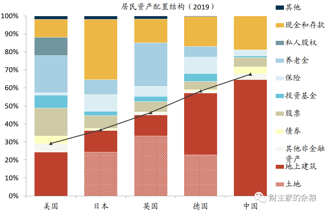 但是,從世界主要經濟體居民資產配置結構來看,中國居民部門的房產佔比太高而股票佔比太低,所以,未來的10年,全國居民財富會有相當一部分從房產逐漸轉換成股票。