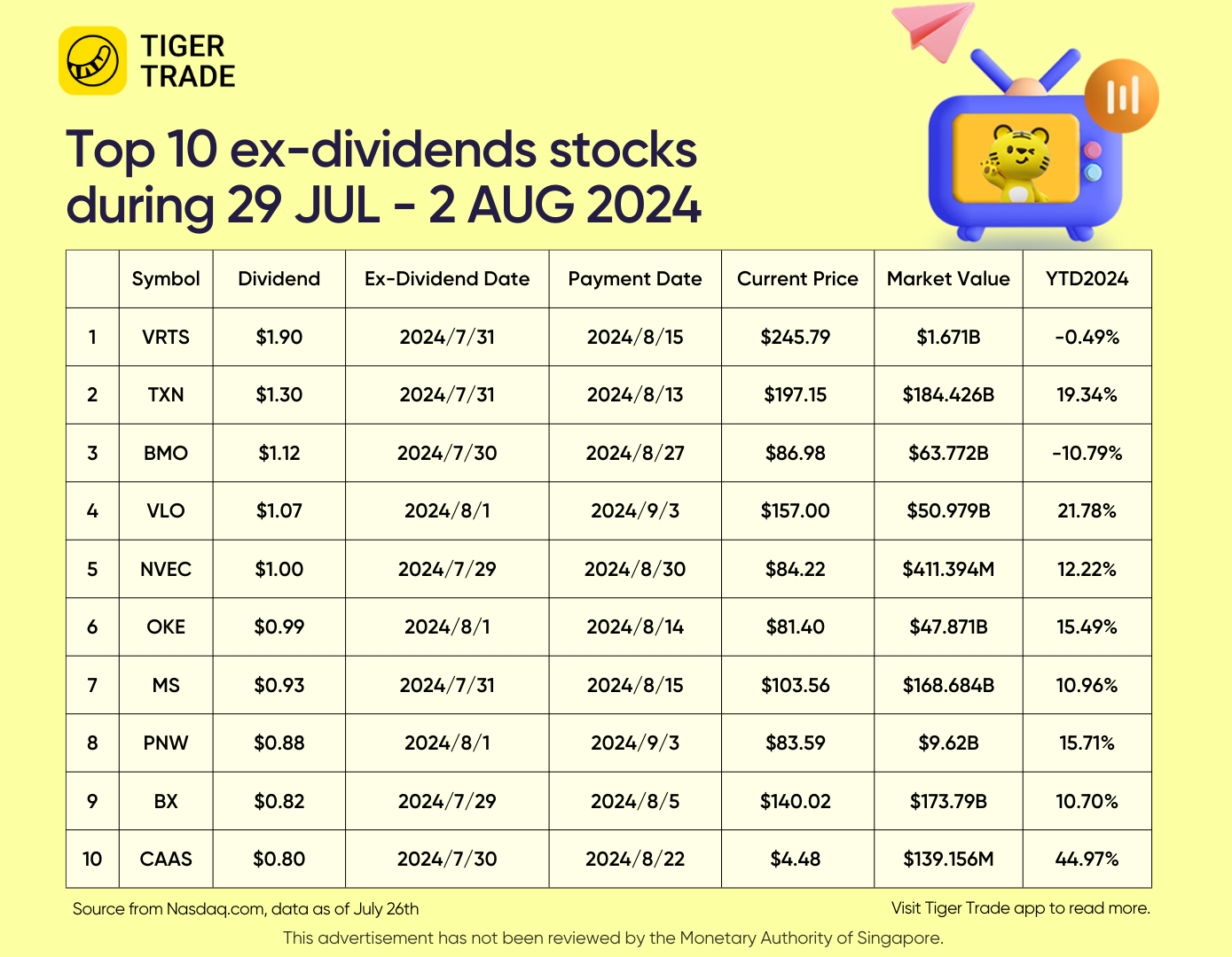 🎁Capturing Top 10 Ex_dividend: VRTS, TXN, BMO, MS, BX...