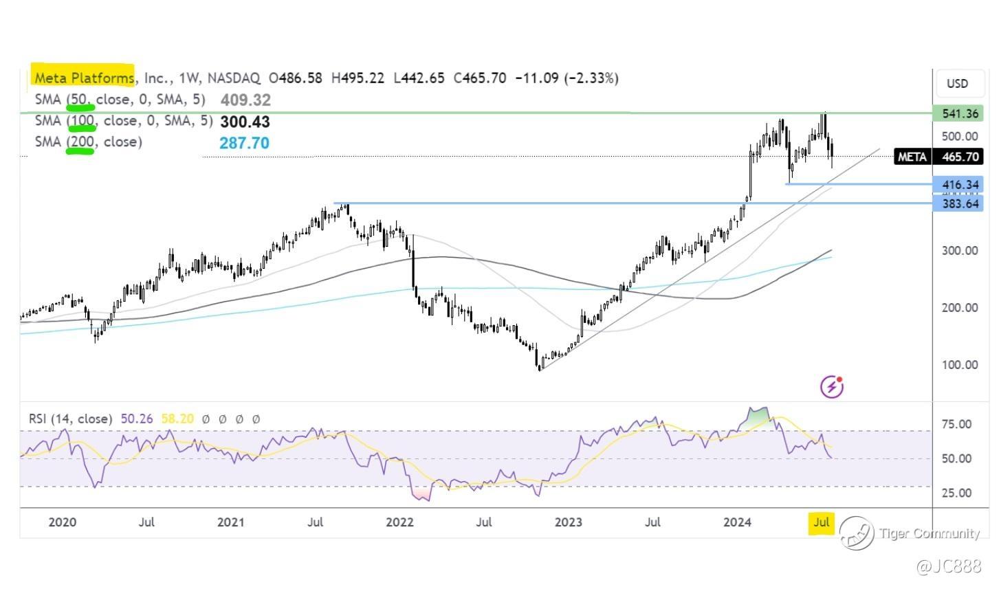 And there’s no looking back since as Meta continued to climb, peaking recently on 5 Jul 2024 at $539.91 per share.