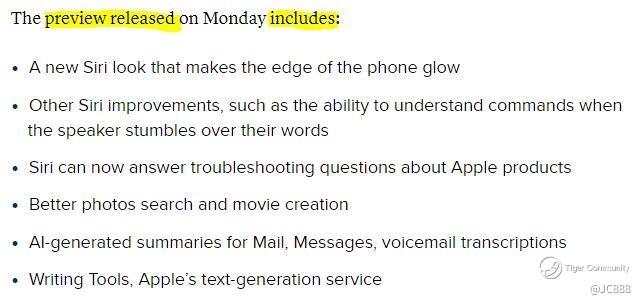 Reasonably, AI-features dropping in iOS 18.1 will consists of the followings (see below), with other features demo-ed during June WWDC to be released progressively thereafter.