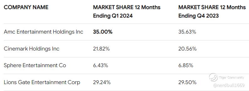 This concern is not unfounded because if we looked at the market share as of 2023, AMC still have a significant 35% at the end of Q1 2024, but Lion Gate is catching up, compared to 2023, AMC has reduced the market share a little.