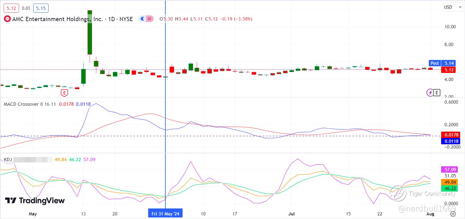 From what we are expecting from AMC quarterly result, technical is showing that MACD is trying to see if a rebound is possible, but KDJ is showing some potential upside.