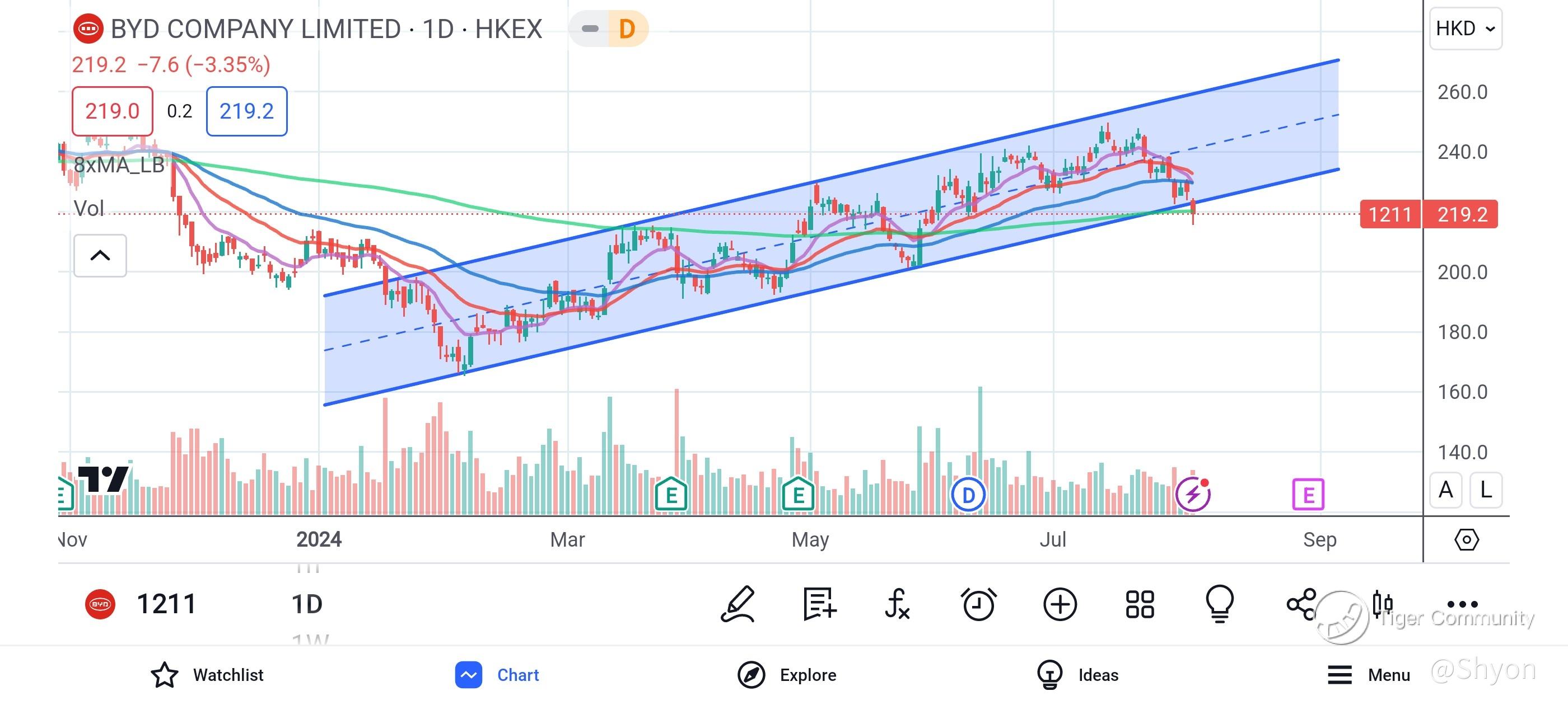 For BYD, since 2024, the share price stays within the uptrend parallel channel as illustrated in the figure above. However, end of this week, BYD share price broke below this uptrend channel which was an alarming sign 🛑. This might represent the beginning of a trend reversal for BYD. Bearish vote for it $BYD COMPANY(01211)$