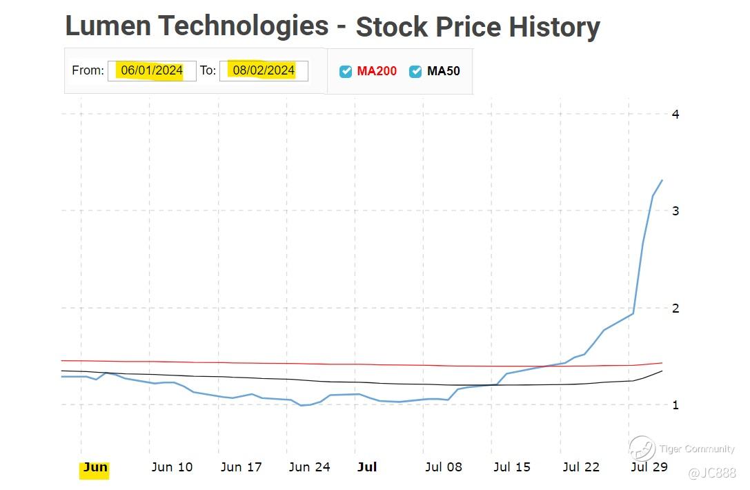 On 01 Aug 2024, LUMN’s end of day stock price was $3.32 per share.