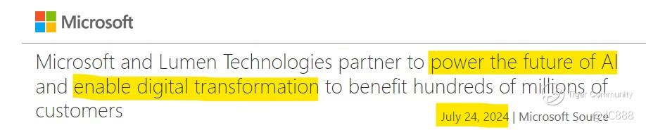 On 24 Jun 2024, there was an announcement by both Lumen Technologies and $Microsoft(MSFT)$ about their collaboration to power the future of artificial intelligence (AI) and enable digital transformation.