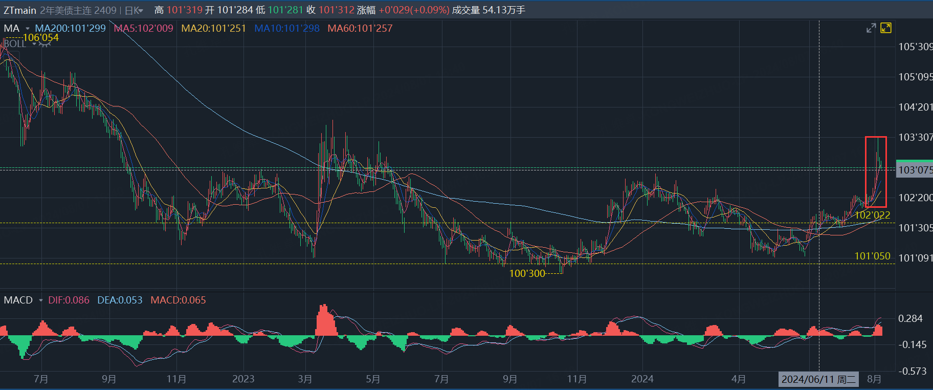 从全球刚刚经历过的黑色星期一的行情来看,似乎大量的资金正在追逐这个预期:当全球股市都在下跌的时候,美债的价格出现了突破,特别是2年期,10年期,和30年期的美债期货价格