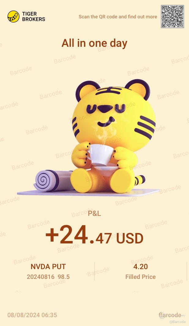 $NVDA 20240816 98.5 PUT$ Dear NVIDIA, you have been so good to me today! I have to leave you now to get ready for work. Hold your ground please and support the market.
