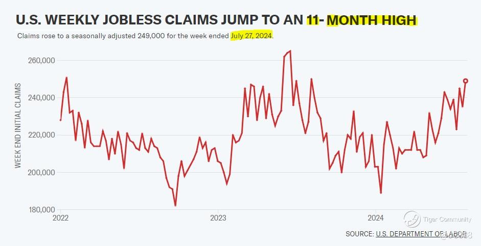 It was exactly a week ago, on Thu, 01 Aug 2024 when US weekly jobless claims report (for week ending 27 Jul 2024) was released, that started the whole downward spiral.