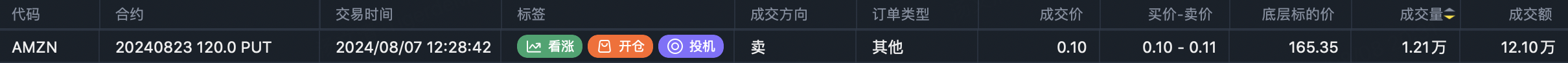 Take this 12,100 contract $AMZN 20240823 120.0 PUT$   sale on Wednesday as another example. Just like my rhetoric about avoiding naked NVDA 70 Puts - the trade sizing/strike seems disconnected from the current fragile sentiment.