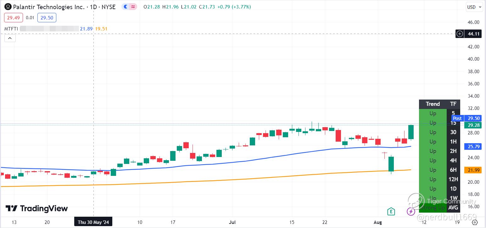 If we were to look at Palantir in the short term from the technical, multi-timeframe actually presented an overall upside signal for Palantir.
