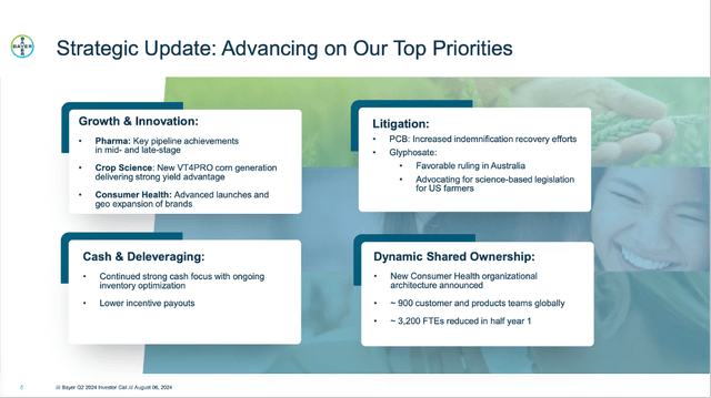So far, the results were not spectacular and there is no reason to be bullish or bearish. But when talking about Bayer, we can’t ignore the risks (which are still surrounding Bayer) as well as management’s efforts to restructure the business and turn the ship around. Let’s start with the risks – and when looking at the company’s top priorities, we also see the two major risks that need to be addressed.