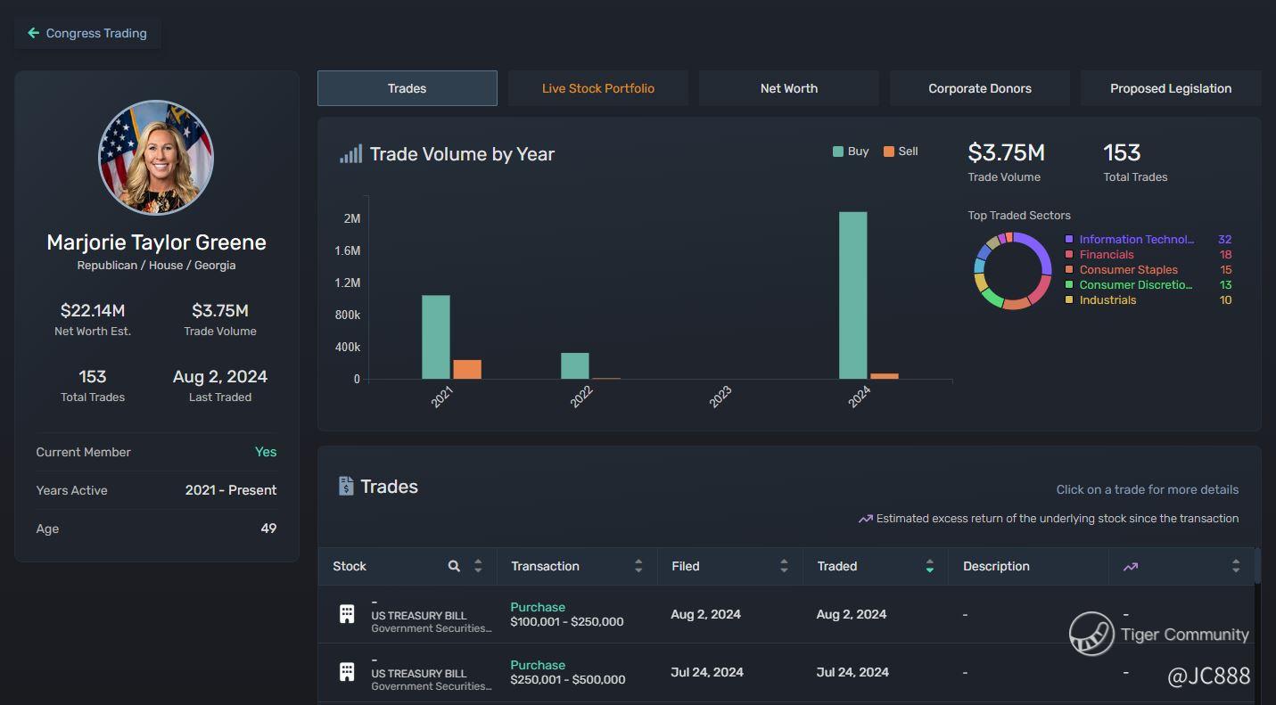 49 years old Marjorie Taylor Greene is a US Representative from Georgia, has garnered attention for her active involvement in stock investments.
