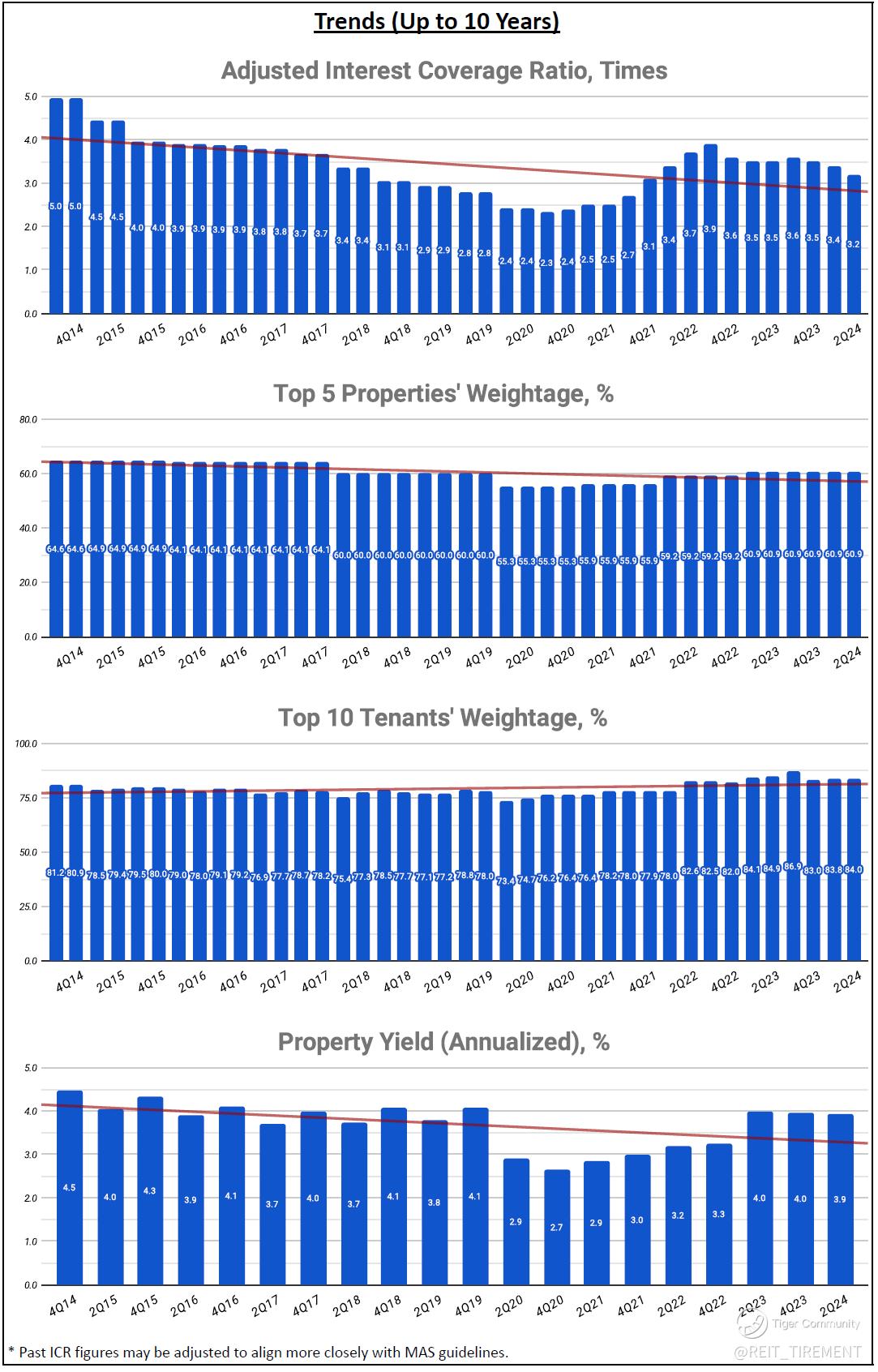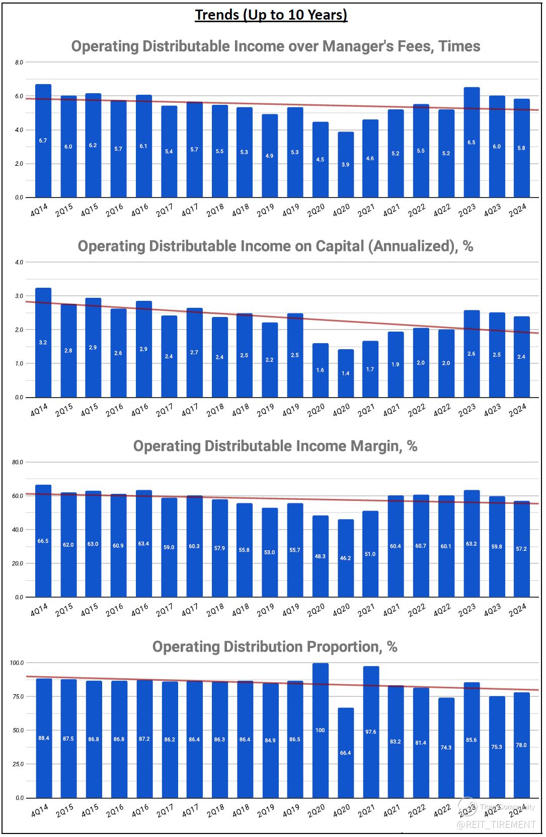 Downtrend: DPU from Operation, Adjusted Interest Coverage Ratio, Property Yield, Operating Distributable Income over Manager's Fees, Operating Distributable Income on Capital, Operating, Operating Distribution Proportion