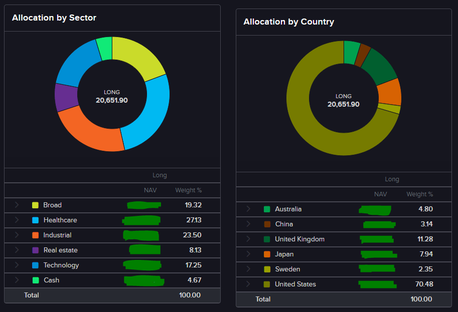 - Current holdings include a mix of cash, fixed income, real estate, and equity investments, with a focus on healthcare.