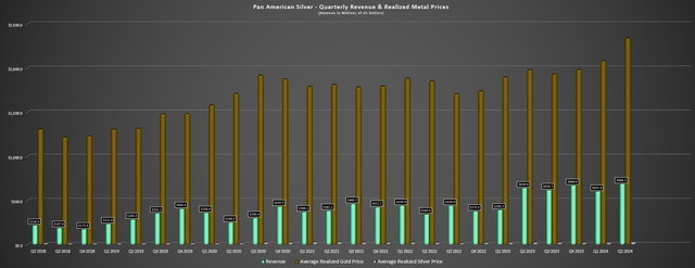 Pan American - Quarterly Revenue & Realized Metals Prices - Company Filings, Author's Chart