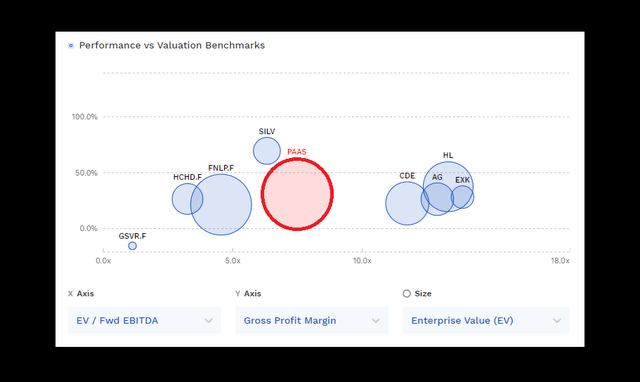 Overall, recent developments have certainly favored Pan American, and it's unique in the sense that it provides exposure to silver with a proven team capable of growing per share metrics and in a much lower-risk vehicle than the bulk of its silver peers (primarily a lack of operational/jurisdictional diversification). Let's look at its valuation below: