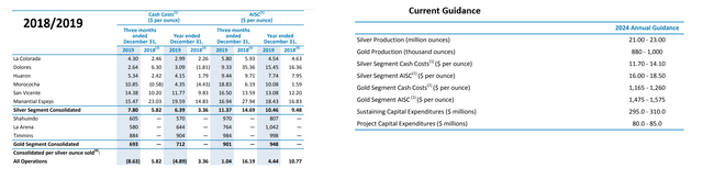 Pan American Silver reported all-in sustaining costs of $19.07/oz for its silver segment and $1,584/oz for its gold segment, respectively, a 21% and 18% increase year-over-year. The significant increase in all-in sustaining costs stemmed from tougher quarters at La Colorada and Cerro Moro in the silver segment (*), and NRV adjustments at Dolores (Q2-24: $2,496/oz AISC), and continued elevated costs at Timmins (Q2-24: $1,999/oz AISC). On a positive note, costs were below its expectations in Q2 and are expected to improve further in H2-24.