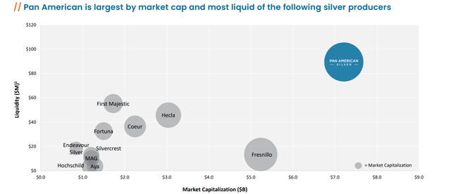2. superior liquidity — far greater liquidity vs. other multi-asset producers with silver exposure like Coeur, Hecla, and Fresnillo.