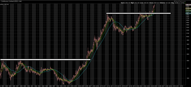 Meanwhile, the Gold Bugs Index appears to be only starting to awaken from a 15-year slumber and downtrend vs. the S&P 500 (SPY) after the ratio came down to within a hair of where it found support following a previous decade plus long bear market that ended in 2000. This has set up the potential for significant mean reversion, assuming one positions themselves in well-run and high-quality miners that have proven their ability to consistently grow per share metrics.
