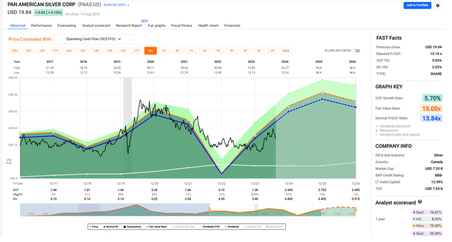 Pan American Silver Historical Cash Flow Multiple - FASTGraphs.com