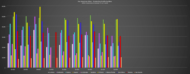 Pan American Silver Quarterly Production by Mine - Company Filings, Author's Chart