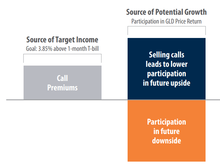 IGLD's goal is to generate 3.85% in income above 1-month treasury bills while providing participation in GLD's upside returns (Figure 3).