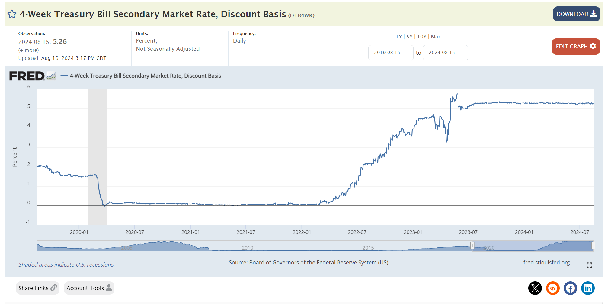 Figure 6 - 1-Month T-bill yields have been 5.25% (St. Louis Fed)