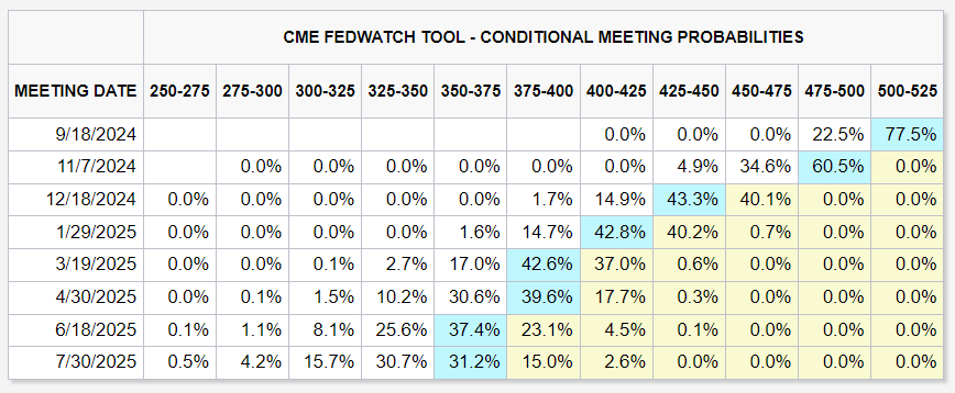Recently, I wrote a bullish article on gold investments, including the Sprott Physical Gold Trust (PHYS). I believe gold is on the cusp of a major breakout, as the Federal Reserve is widely expected to begin a rate-cutting cycle at the upcoming September FOMC (Figure 7). Over the next 12 months, investors are pricing in 6 rate cuts by the Fed.