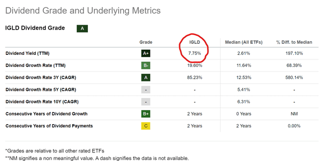 Figure 5 - IGLD pays a 7.8% trailing yield (Seeking Alpha)