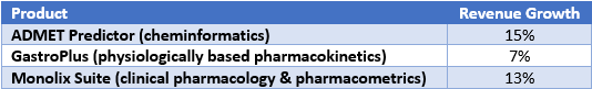 Table 1: Software Revenue Growth (source: Created by author using data from Simulations Plus)