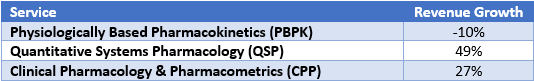 Table 2: Service Revenue Growth (source: Created by author using data from Simulations Plus)