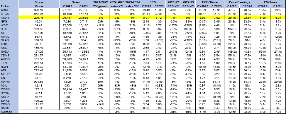- We expect AMAT to outperform in 2025 as leading-edge WFE spending for foundry/logic and DRAM recovers.