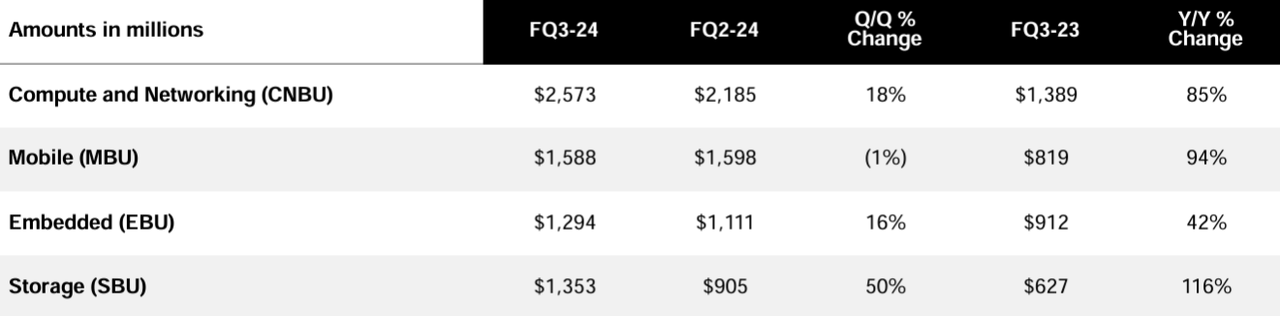 We do see more material upside for MU in 2025, primarily driven by a healthier demand environment for PCs, smartphones, and AI servers in terms of unit volume. We specifically mention unit volume recovery here across these markets due to MU's specific exposure to these markets (as shown in the chart from the 3Q24 earnings presentation) and concern over Q/Q growth momentum at the back end of the year.