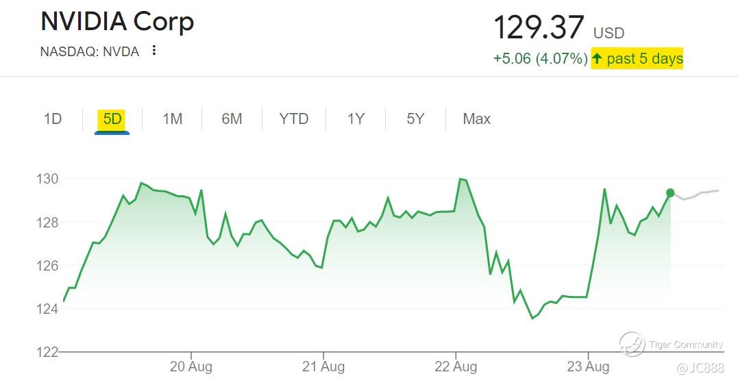 Last week, Nvidia stock rose +4.07% to $129.37 per share.