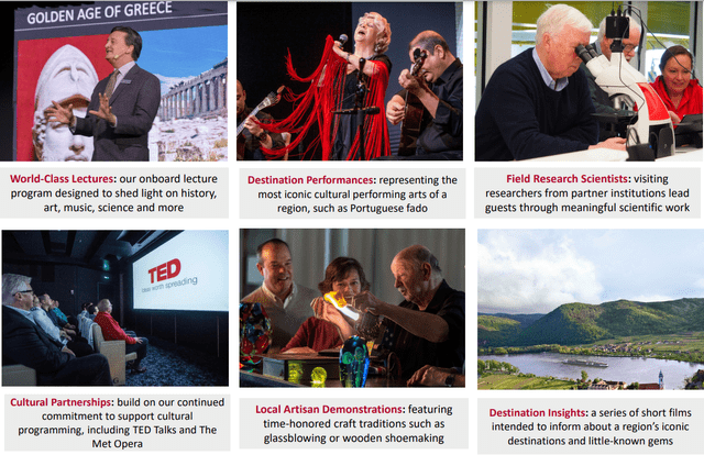 Some of the unique experiences offered by this company to its customers include lectures focusing on art, science or history, artistic performances, applied research demonstrations, live TED speeches, artisan demonstrations, and destination explorations. Many of the destinations covered by these cruises tend to be places of high cultural importance as well as beautiful scenery where people can explore those areas.