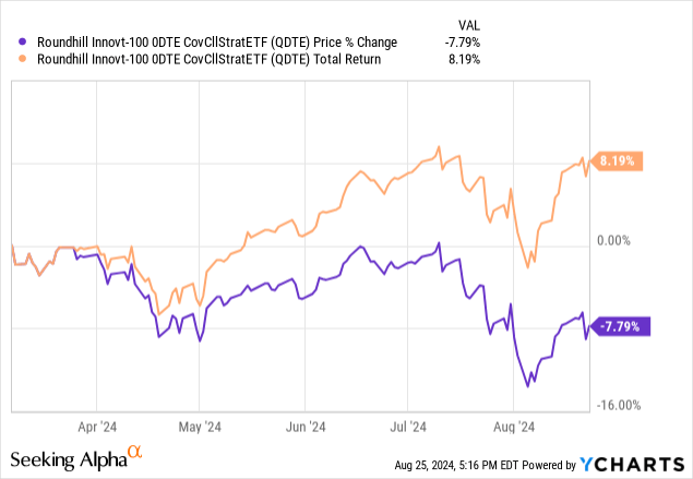 Roundhill Innovation-100 0DTE Covered Call Strategy ETF (BATS:QDTE) is a covered call that writes daily options and pays weekly dividends on Nasdaq 100 index (QQQ). I covered this fund in a recent article titled QDTE: A New Fund That Writes Daily Options And Pays Weekly and the fund seems to have had a shift in its strategy since then, and I believe it's worth looking at the fund once again in light of its new strategy.