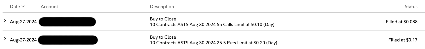 Closed the $AST SpaceMobile, Inc.(ASTS)$ 25.5p & 55c strangle sold last week. Could have probably let it expire worthless this week, but decided to just take the profit and move the buying power to other trades.