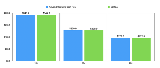 To put in perspective how much cash flow NCNO would need to generate to be fairly valued at a price to adjusted operating cash flow multiple of either 10, 15, or 20, or fairly valued at an EV to EBITDA multiple of between 10, 15, or 20, I created the chart below. Even if we use the more aggressive assumptions, shares are still quite a bit away from being fairly valued, let alone being undervalued.