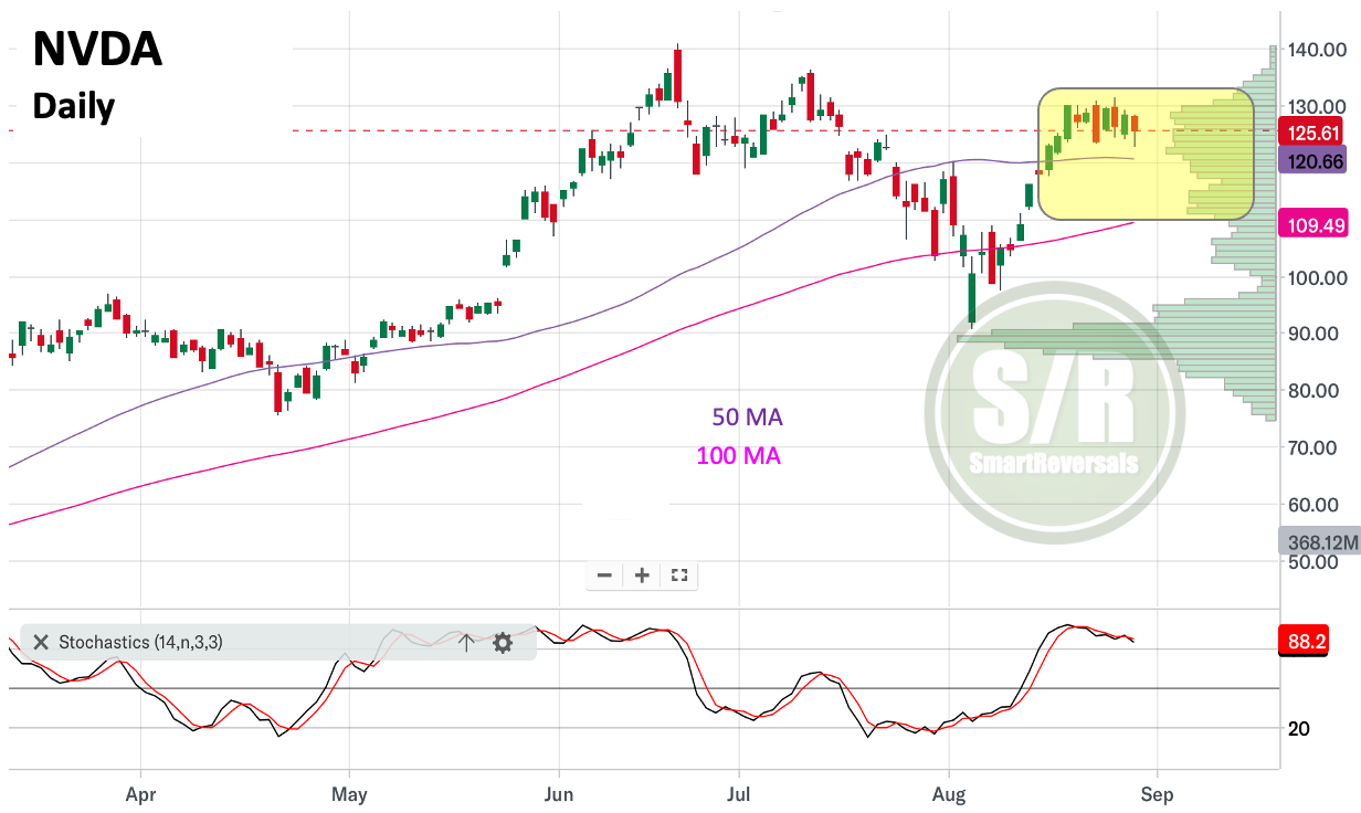 NVDA has good fundamentals, so the price is expected to move in the current volume shelf during this consolidation process, of course, there is a wide area and the lower edge of the shelf is $110, which matches the 100DMA. That level is a potential entry point… if it is reached.