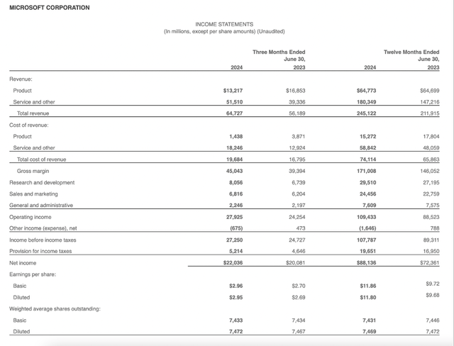 Microsoft Q4/24 Earnings Release