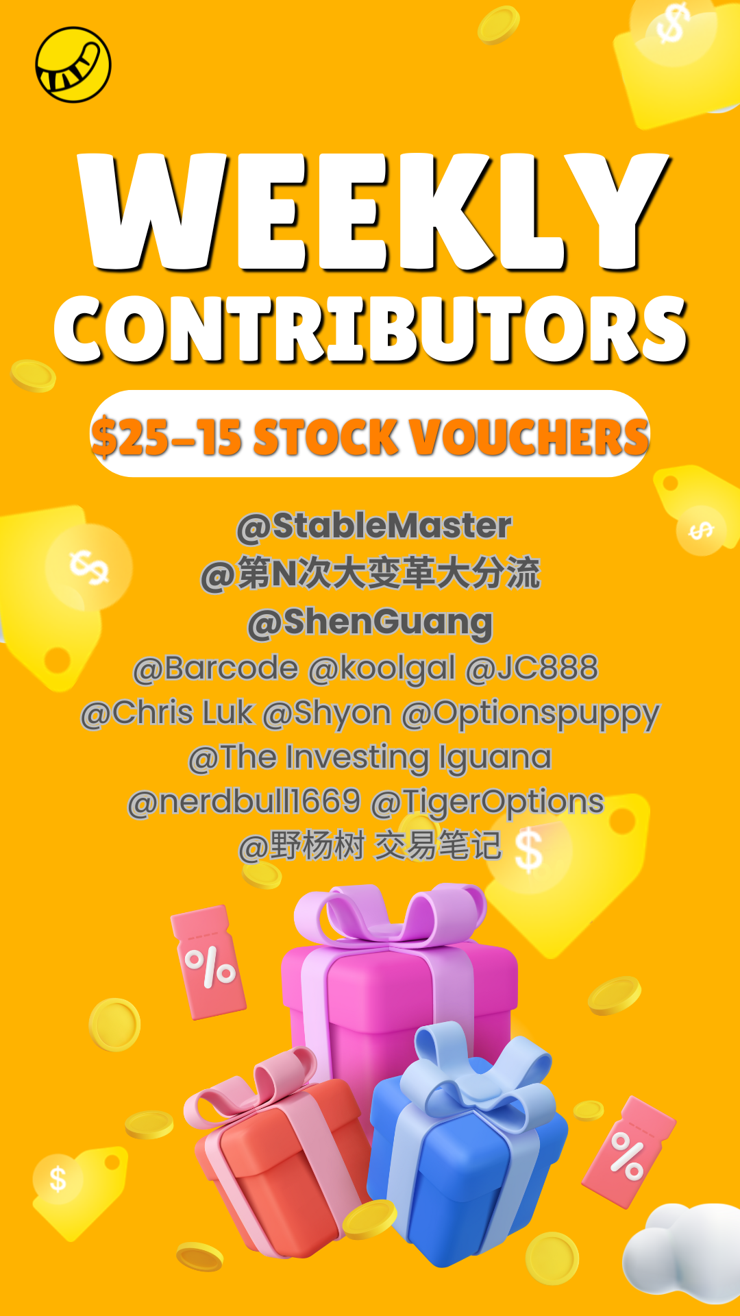 Weekly Top Contributor ($15 stock voucher):