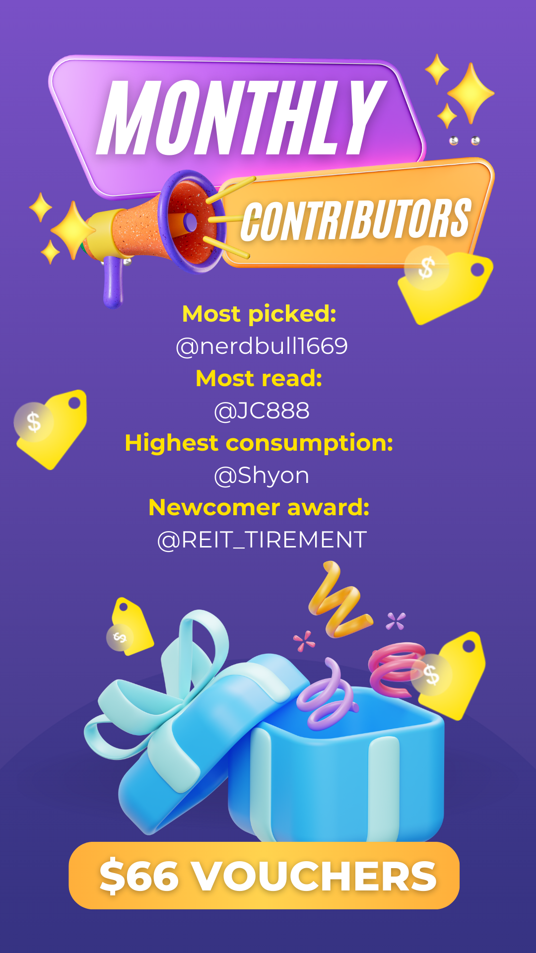 Weekly & Monthly Top Contributor: Congrats to these Tigers on winning $225 vouchers in total!