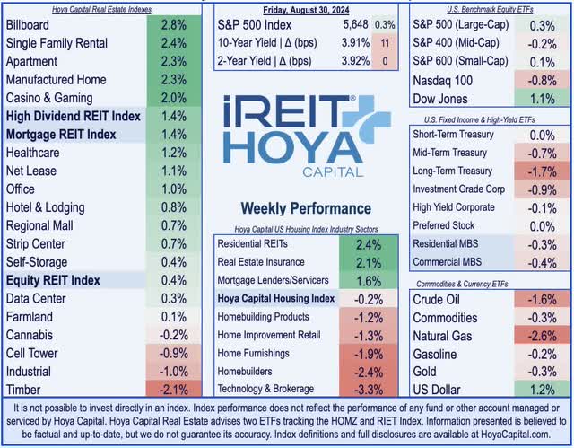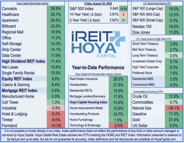 Disclosure: Hoya Capital Real Estate advises two Exchange-Traded Funds listed on the NYSE. In addition to any long positions listed below, Hoya Capital is long all components in the Hoya Capital Housing 100 Index and in the Hoya Capital High Dividend Yield Index. Index definitions and a complete list of holdings are available on our website.